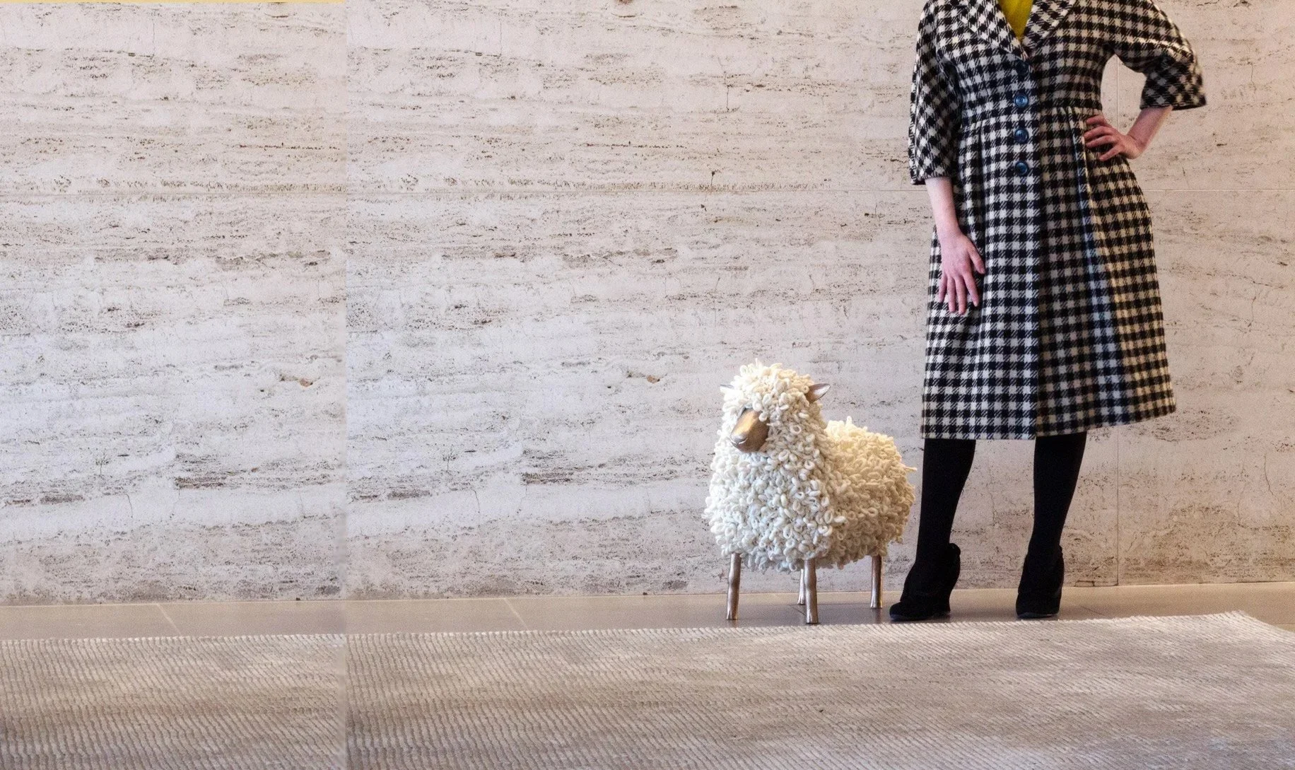 Each sheep features a bronze face, ears, and legs, and a cuddly fleece created through spinning and knitting natural wool. Upholstered by hand, these footstools are part furniture, part sculpture and all personality.